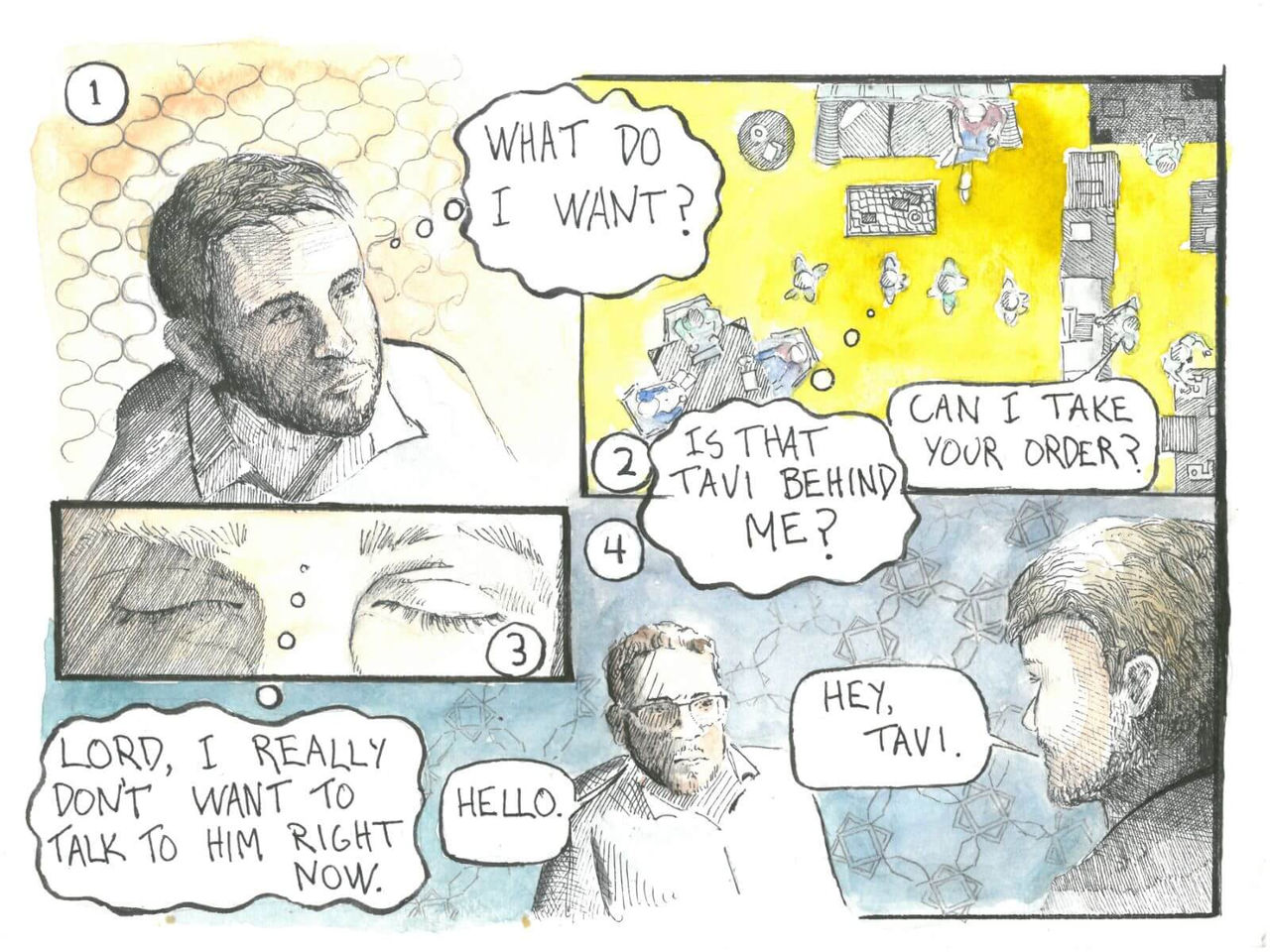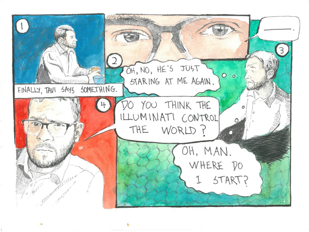 Below is a story told through illustrations with added text to guide you. The artist numbered the drawings within each panel, so you can more easily follow along. While the story itself is accurate, we have changed names and kept places vague for the security of those involved.