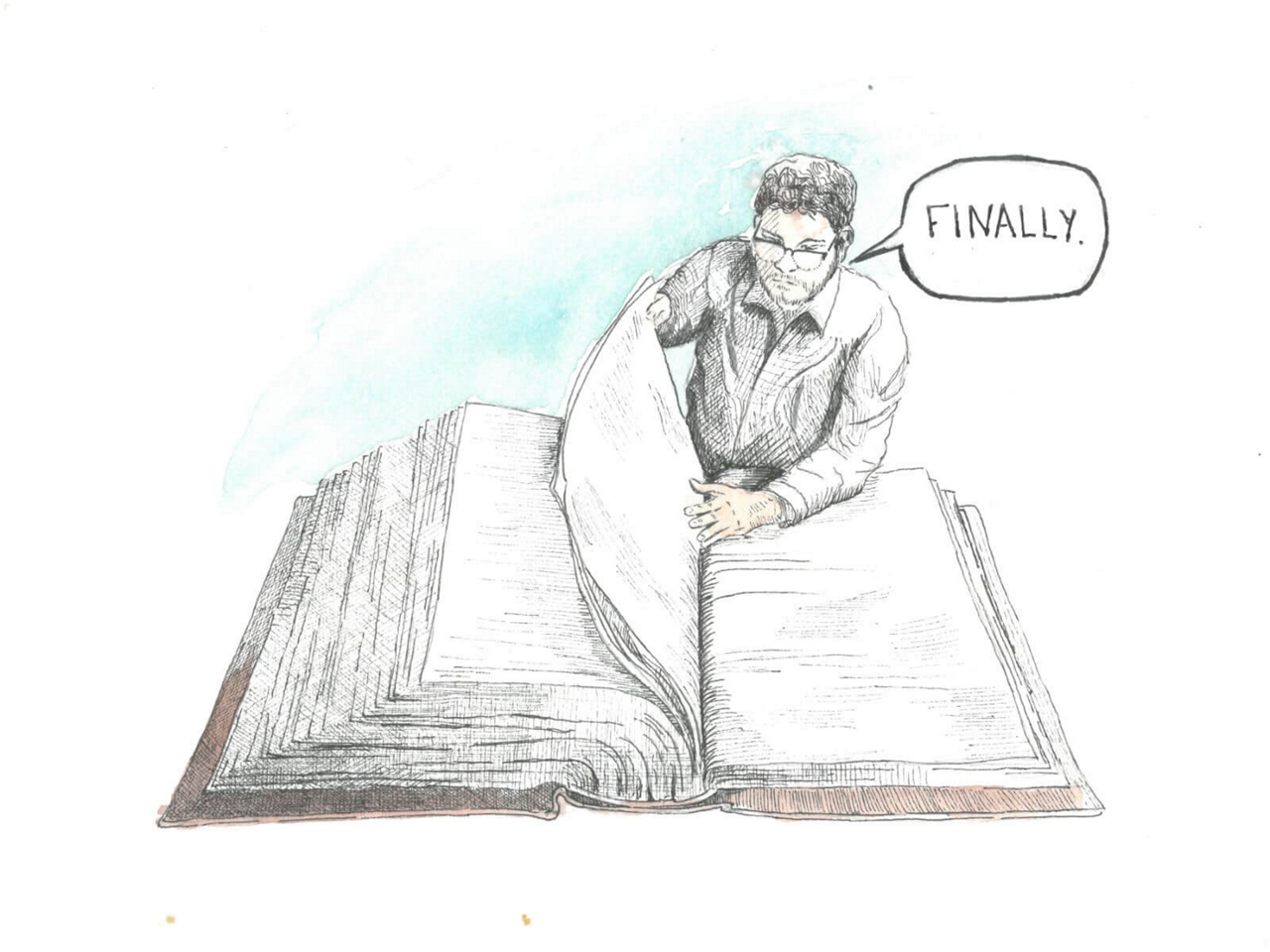 And Tavi goes searching again. Unsatisfied with looking at a cell phone to read the Bible, he finds a Bible that’s larger than a phone book buried deep in the library stacks.